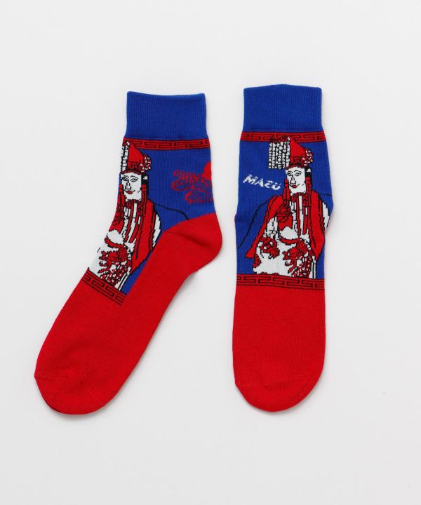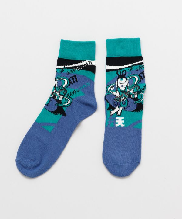 インドや中国の神様から進化した、福を呼ぶ神様たちが船に乗り旅をしながら幸せを撒き散らす。リブが長めでフィット感があり、色鮮やかな神様が足元を彩る。