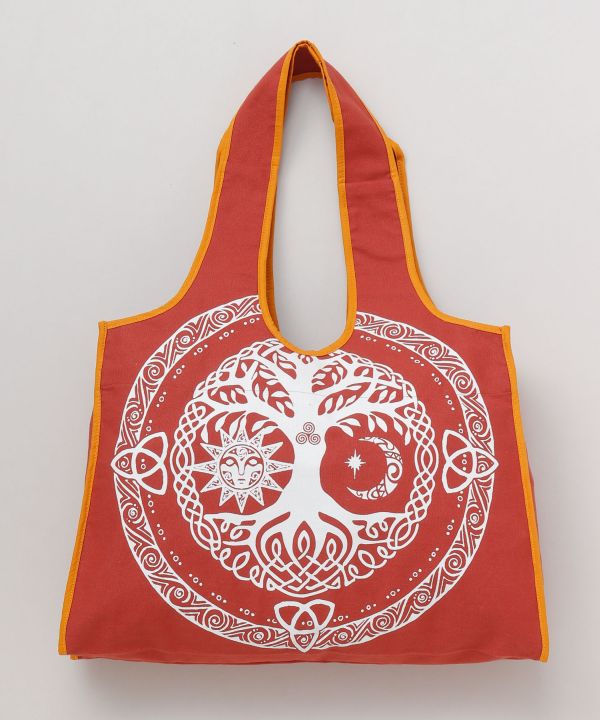 生命の木が描かれた力強いパワーシリーズ。A4サイズもすっぽり入る、肩掛け可能なトートバッグ。持ち手が太めで持ちやすい。内ポケット、マグネットボタン付き。