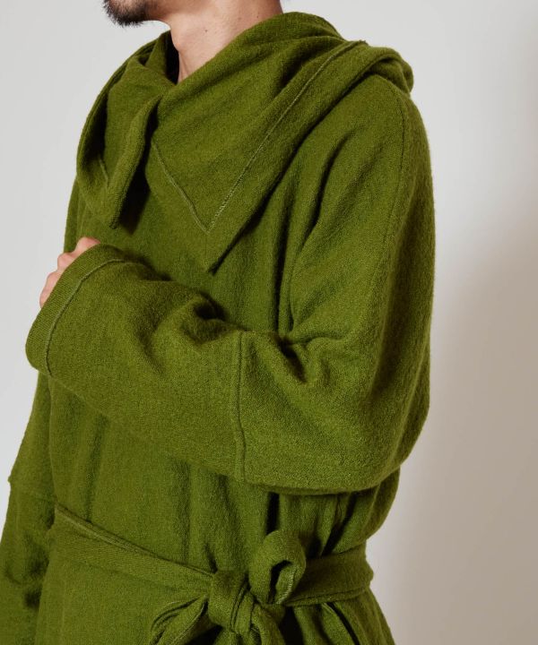 唯一無二のこの形。モンゴルの民族衣装「デール」から着想したユニセックスで使えるコート。この素材感と温かさはウール100%ならでは。今でも人々を引き付けてやまない、シルクロードの雰囲気を表現する色展開。まさにノマド(遊牧民)スタイルの王道アイテム。あなたの自慢の一枚に。