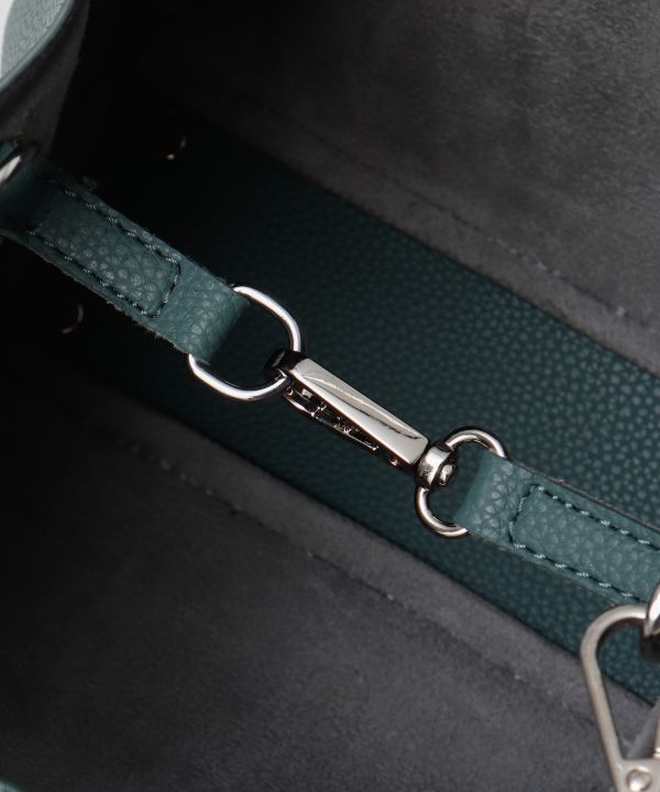 毎日のお出かけに大活躍しそうな、シンプルで使いやすいレザーの2WAYトートバッグ。同じ素材のポーチ付き。マチが広く、小ぶりながらも収納力があります。内側の金具を留めるとさらにコンパクトなシルエットに。スナップボタン付きなのも嬉しいポイント。チェコガラスのチャームつき。