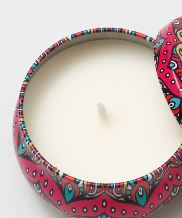 天然の大豆ワックスと、天然エッセンシャルオイルで作られているキャンドル。香りと色柄の種類も豊富で煙やススが出ず、香りと灯りを存分に堪能できます。カラフルなマンダラ模様で、使い終わった後には小物入れとしても使えます。あなたのお部屋を癒し空間に。※燃焼時間:28〜32時間 ブリキ缶が使用時熱くなるので、耐熱性のシートや陶器等の上で一回に二時間程度のご使用を目安にして下さい。