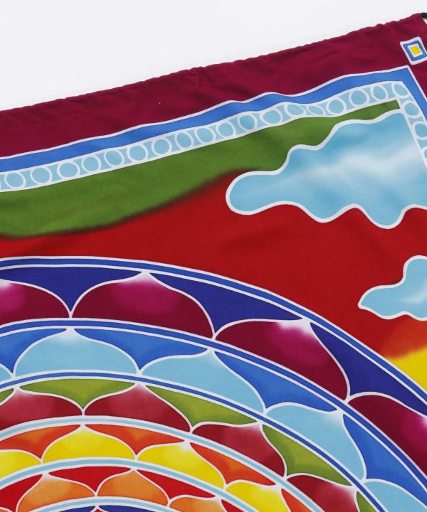 バリ直輸入の鮮やかなマンダラ模様のタペストリー。伝統技法「バティック染め(ろうけつ染め)」の色鮮やかな布です。上部に紐が付いているので、間仕切りやお部屋の装飾に使えます。