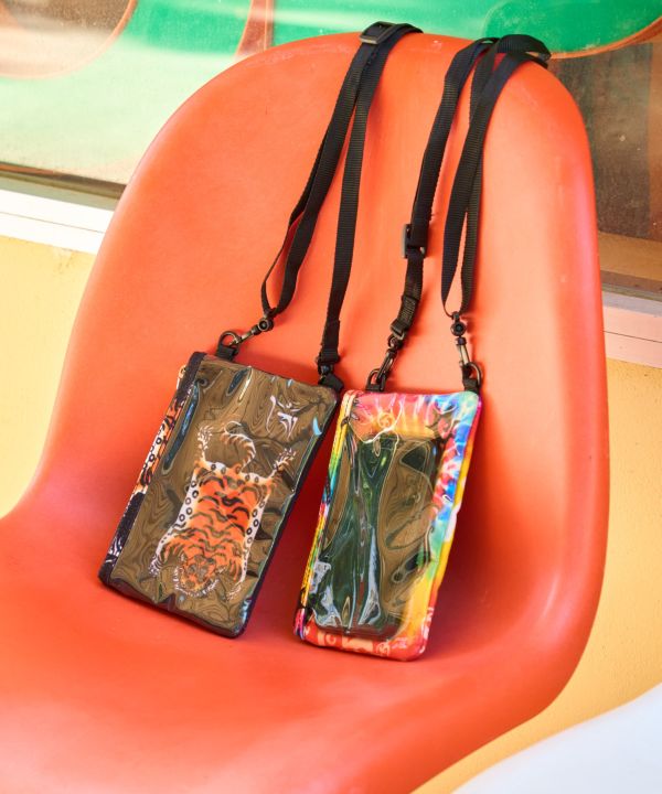 遊び心が光る、大人気のスマホポーチシリーズ。諸国の神様や精霊をモチーフにしたデザイン。クリアポケットにスマホを入れたまま操作ができる、便利なミニショルダー。中央と背面にはファスナーポケット付き。ポリエステル、塩化ビニール素材で少々の汚れも気にならない。アウトドアシーンやキャンプ、フェスなどイベントの時にも大活躍。自分にぴったりの柄を見つけよう。