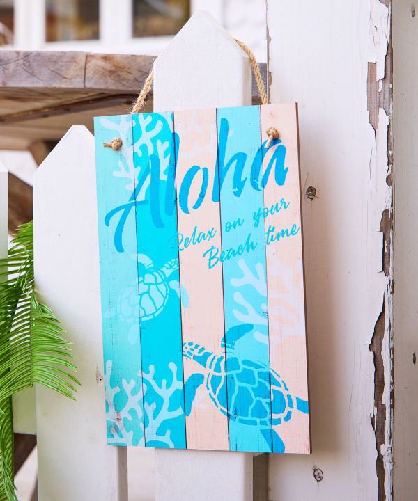 現地ハワイを思わせるデザインのアロハサインボード。存在感のあるサイズで、お部屋や玄関を一気にハワイアンテイストに演出。ナチュラルでヴィンテージ感漂うデザインが空間を彩ります。