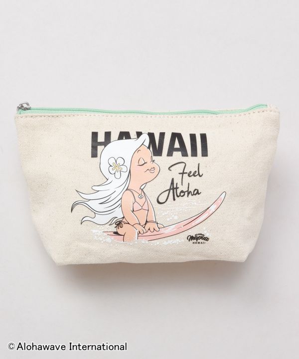 サーフィンとファッションを愛する365日HAWAIIを感じられるキャラクター、ALOHA MAPUA(アロハマプア)のポーチ。HAWAIIの日常を過ごしているMAPUAの可愛らしいイラストと、イラストごとに違うファスナーの色がポイントです。バッグとセットでプレゼントにもおすすめです。