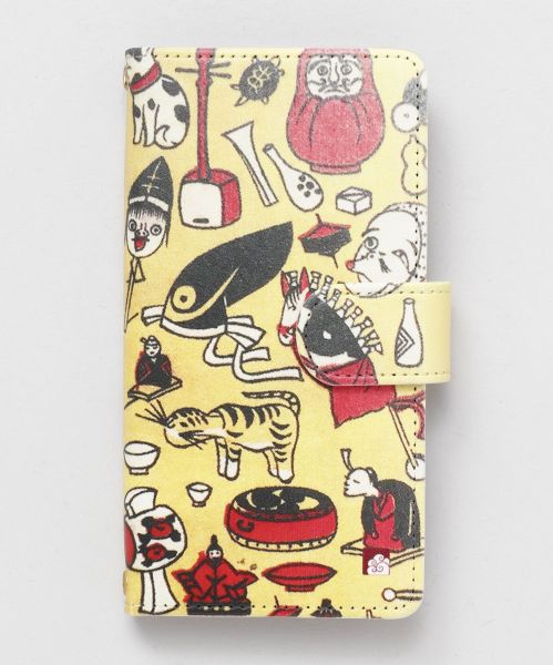 カヤオリジナルの手帳型のスマホケース。カヤらしい鮮やかで目を引くようなデザインから、和を感じさせる日本モチーフまで様々。フリップはマグネット式。手帳を開くとカード用のポケットが2つあるので収納に困りません。