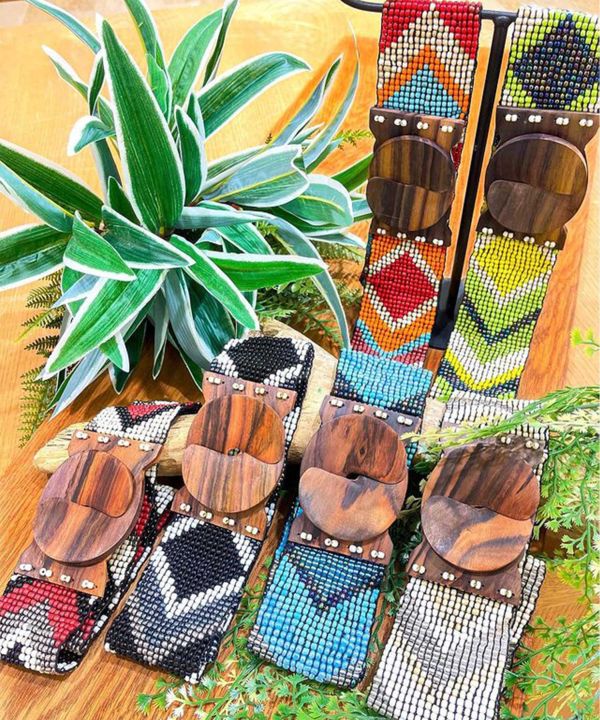 コーデの幅を広げてくれるベルト。春夏気分盛り上がるビーズの輝きが着こなしのワンポイントに。ゴムで伸縮仕様なので付け心地が楽なところもおすすめ。