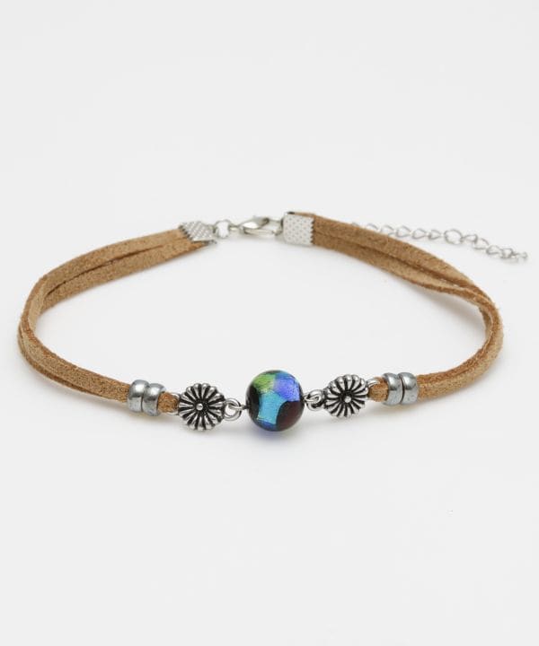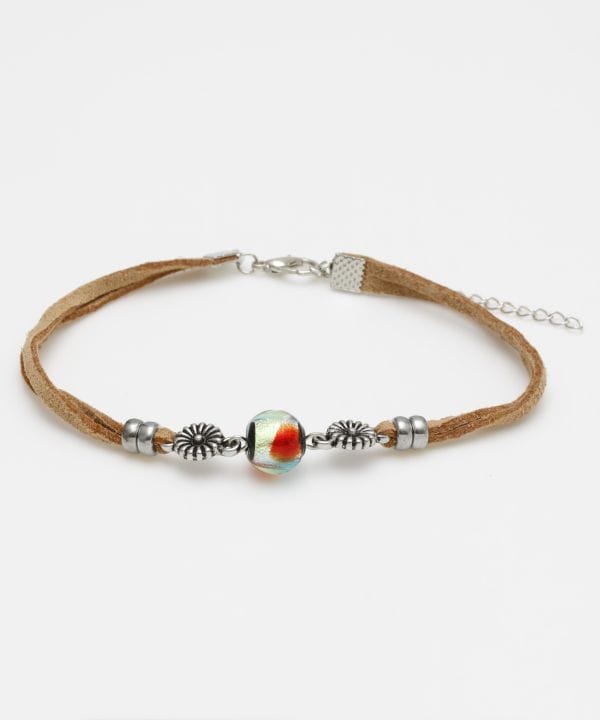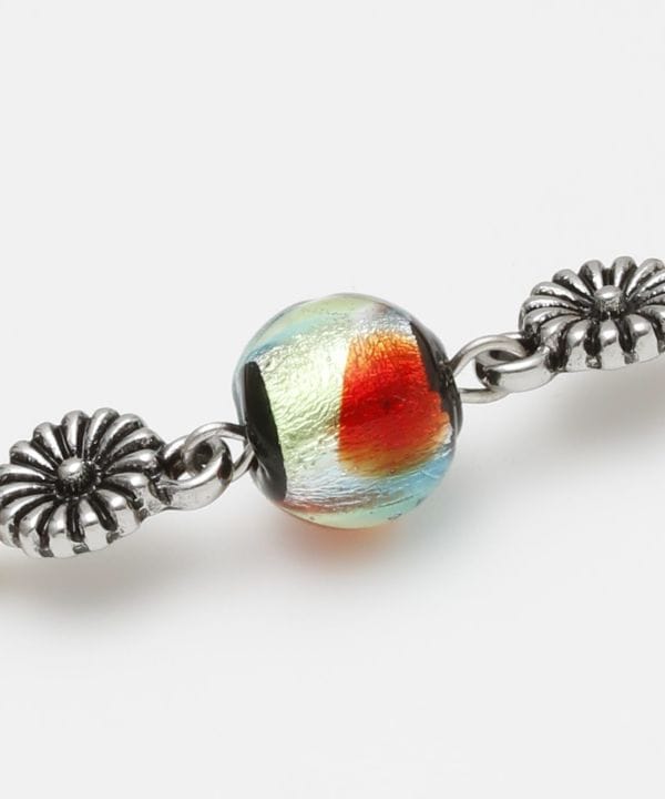 大地の輝きを閉じ込めたような、神秘的なホタル玉のアンクレット。虹彩の輝きを放つホタル玉にコンチョパーツを組み合わせた、ヴィンテージ感のあるデザインが足元を彩ります。アジャスター付き。