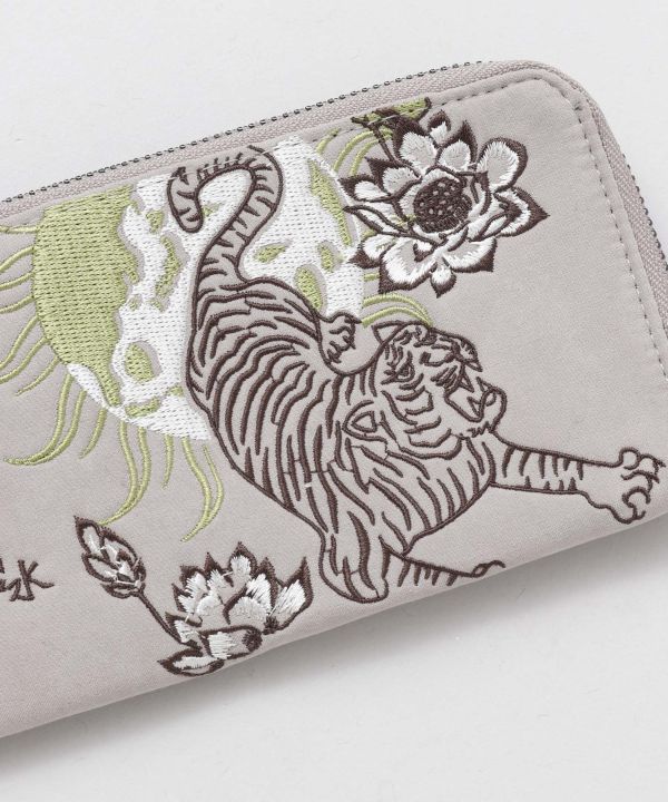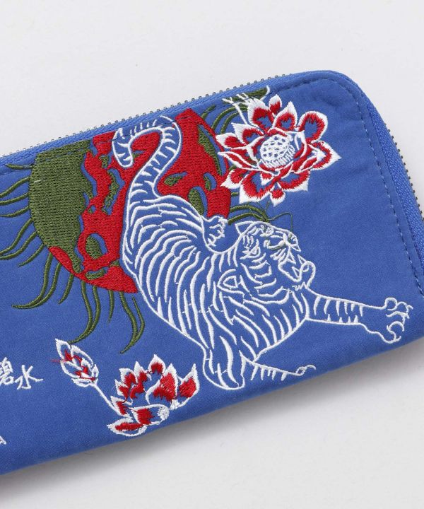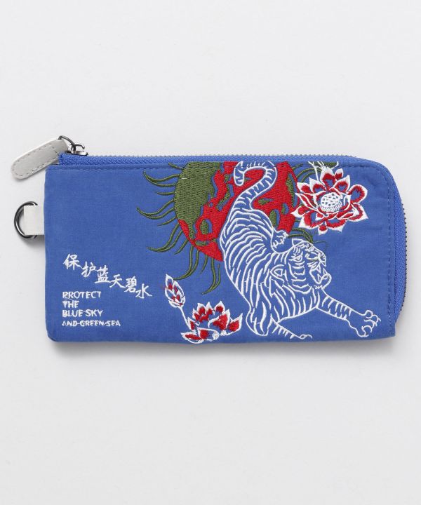 自然と海を守っていこう。ただオラってるだけじゃない。SDGSも考えて自然も動物も植物も共存したい。と、願いを込めたデザインのスカジャン風刺しゅう。使いやすいL字ファスナータイプのロングウォレット。内側には、カードポケット16カ所・差し込みポケット2カ所・オープンポケット、背面にはファスナーポケット付きで収納力抜群。カラビナやストラップがつけられるDカン付き。