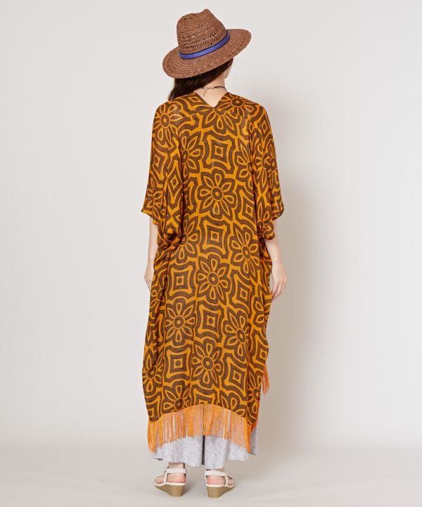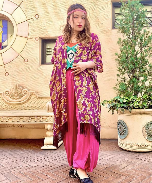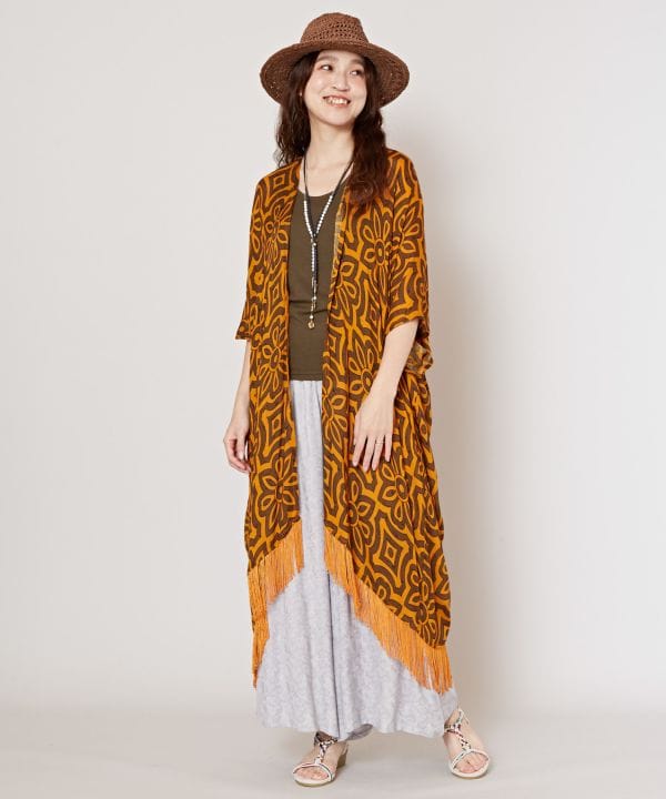 風に揺れるシルエットが美しいロングカーディガン。さらりとしたレーヨン素材で着心地も抜群。普段使いはもちろん、フェスシーンにも映える華やかな一枚。雰囲気の違うボヘミアンな5柄展開。