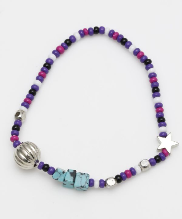 ヒッピーをイメージしたカラフルなブレスレット。カラーの種類が豊富で重ね付けもおすすめ。フェスコーデのワンポイントに。