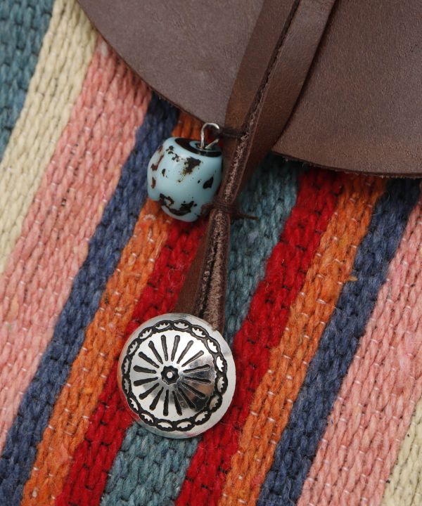 カラフルな織り生地のポーチネックレス。少し縦長で薄型のポーチには、コンチョボタンとワンポイントのターコイズ風のパーツ付き。ちょっとしたアクセサリーやワイヤレスイヤホンなどを入れるのにも便利です。軽くてワンポイントにも使用できるネックレス。