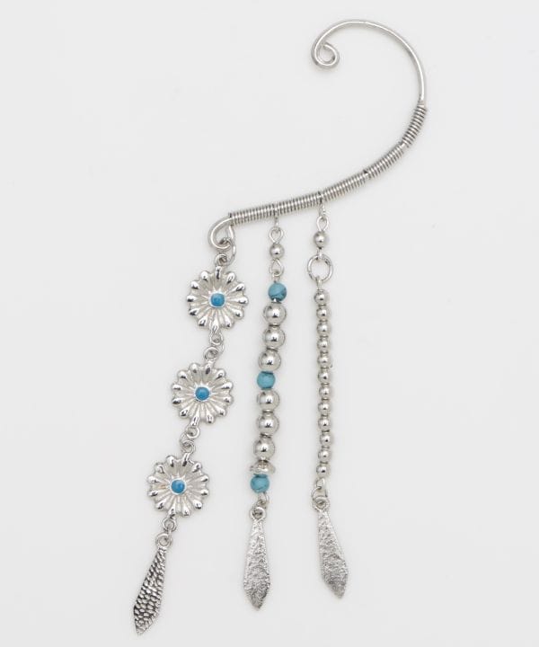 ネイティブアメリカンの伝統工芸の一つ、コンチョをイメージしたイヤーフック。ピアスホールが開いていない方でも、引っ掛けるだけで手軽に耳元のお洒落を楽しめるアクセサリー。顔周りの印象を華やかにしてくれます。