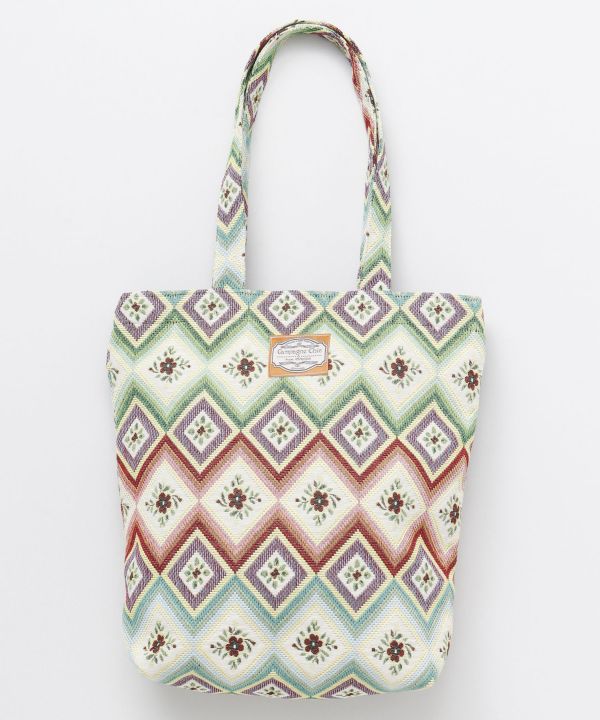 うっとり見とれてしまう美しさが魅力的。フランスから輸入したゴブラン生地を日本で縫製し、トートバッグに仕立てました。上質でしっかりと厚みがあり、ほんのり凸凹感のある生地が美しい一点。広めのマチつきで、A4サイズがすっぽり入ります。内ポケットとスナップボタン付きなのも嬉しいポイント。お出かけを優雅に彩ります。