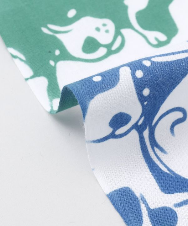 狩野永良が描いた犬の浮世絵を子供らしくリデザインした手拭い。たくさんの犬が詰まった犬好きにたまらない一枚。