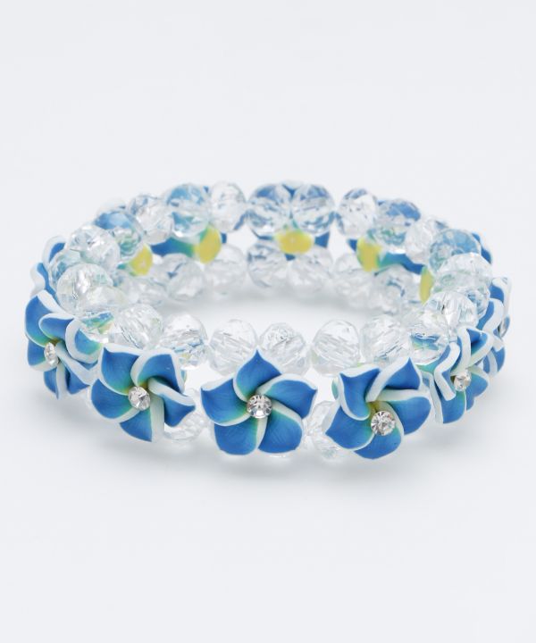 プルメリアのモチーフが全体にあしらわれたブレスレット。鮮やかなカラーのモチーフとクリスタルビーズが、華やかなHAWAIIを演出してくれます。
