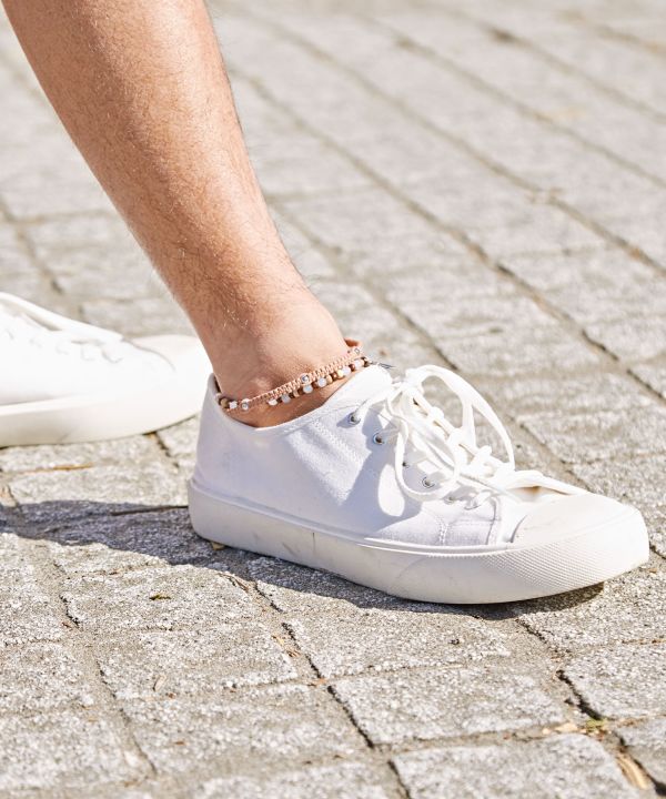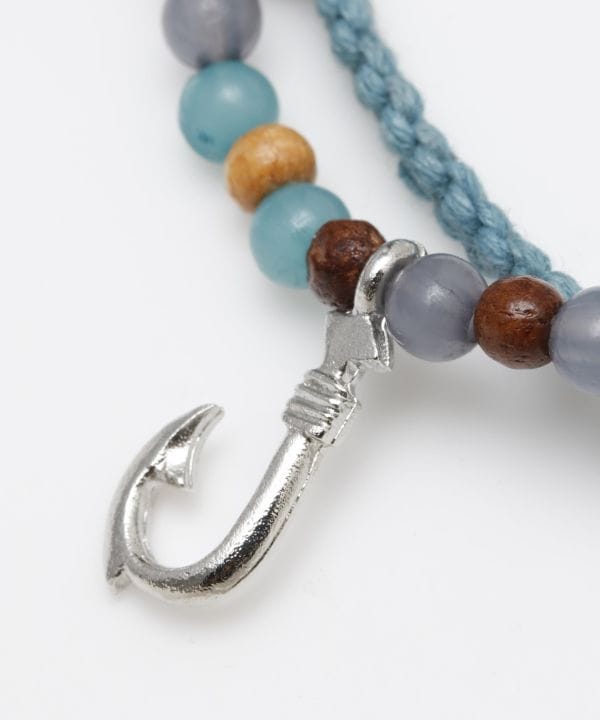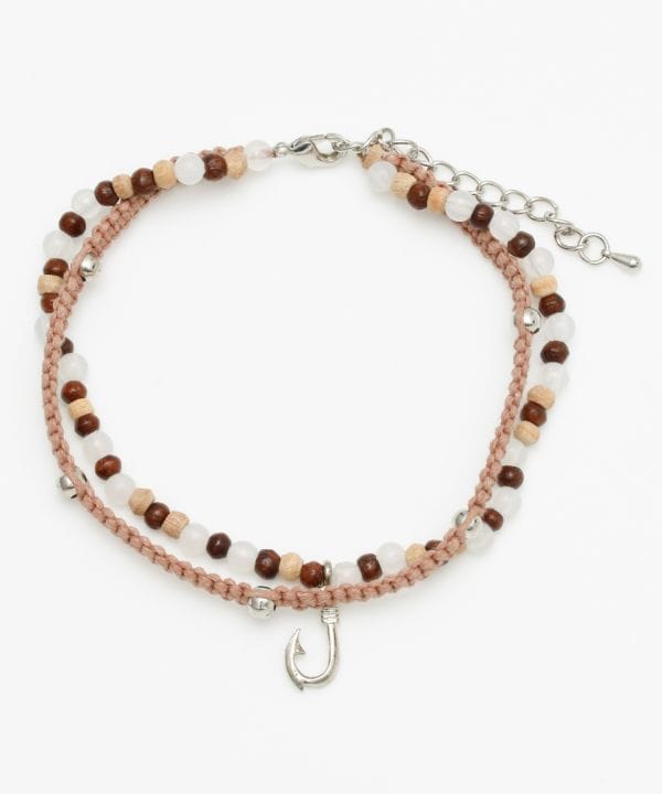 HAWAIIでは幸運を吊り上げるという意味が込められた、フィッシュフックモチーフがポイントのメンズアンクレット。2連でボリューム感もありながら、馴染みやすいアースカラーはシンプルコーデのアクセントに。