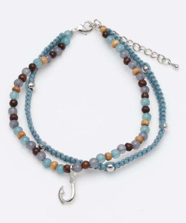HAWAIIでは幸運を吊り上げるという意味が込められた、フィッシュフックモチーフがポイントのメンズアンクレット。2連でボリューム感もありながら、馴染みやすいアースカラーはシンプルコーデのアクセントに。