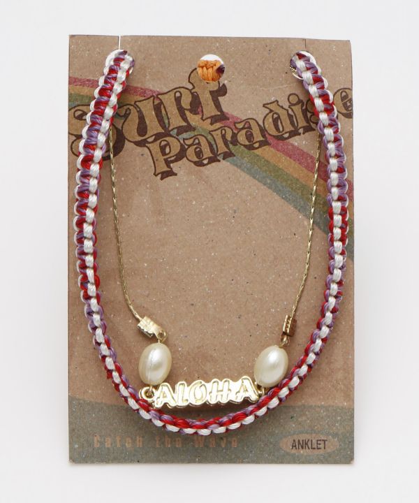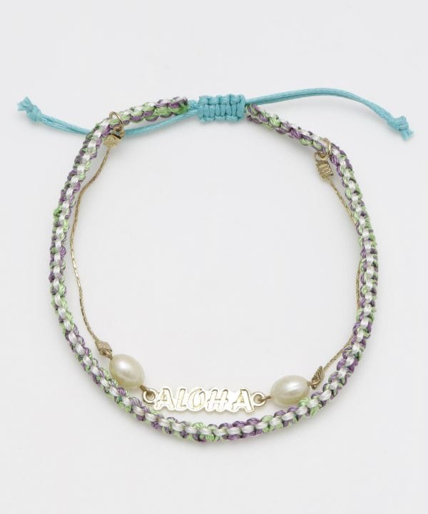 ALOHAの文字とパールの組み合わせが可愛らしいアンクレット。HAWAIIの自然をイメージしたカラーが、足もとを華やかに彩ります。