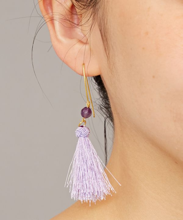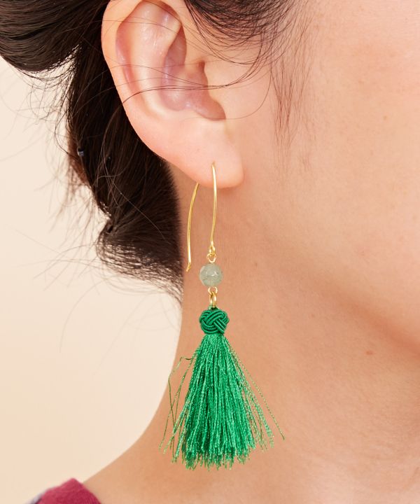様々な云われがある天然石に、縁起の良いあわじ結びを合わせたピアス。デザインの好みだけでなく、願いに合わせて選んでいただくこともおすすめです。