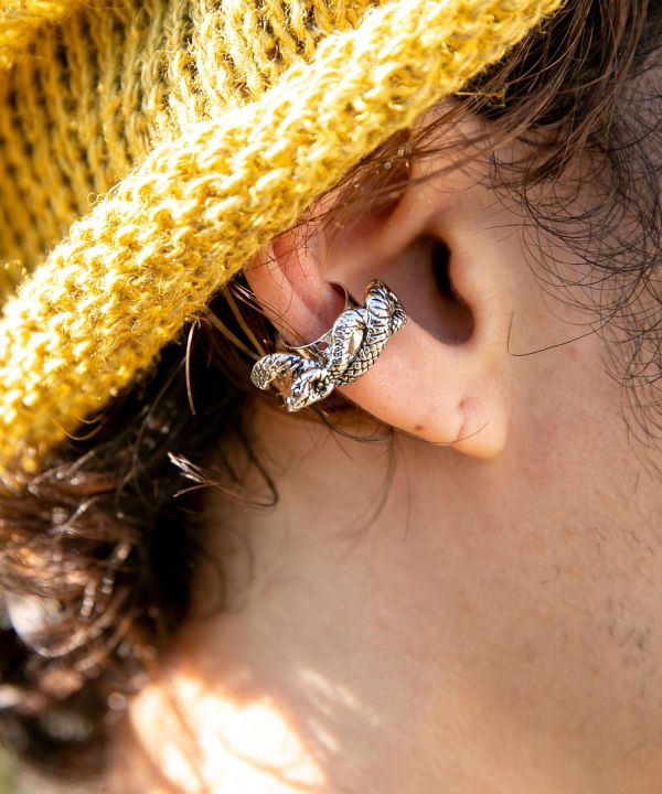 耳元にワンポイント。ピアスの穴がなくても、耳に挟むだけで雰囲気がガラリと変わるイヤーカフ。モチーフには金運が上がるといわれている蛇があしらわれています。コーディネートにスパイスを与えられるアイテムです。