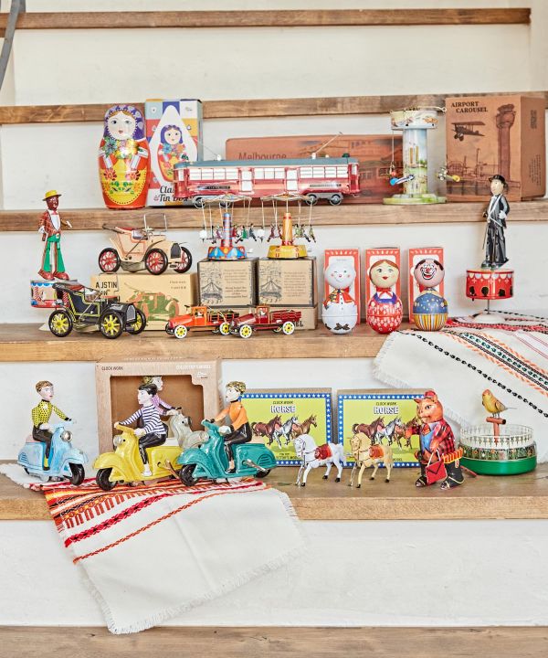 ぜんまい仕掛けのブリキのおもちゃ。オーストラリアのメルボルンに実在する路面電車「シティーサークルトラム」を忠実に再現。ぜんまいを巻くと、メルボルンの街中を行くように走り出します。※安全上の理由から、子供のおもちゃとしては適していません。