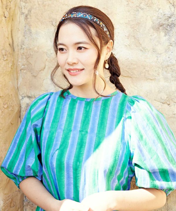 なめらかな生地感のイタリア製スカーフで作られたカチューシャ。細めなので、ヘアアレンジにさりげなく花を添えてくれます。