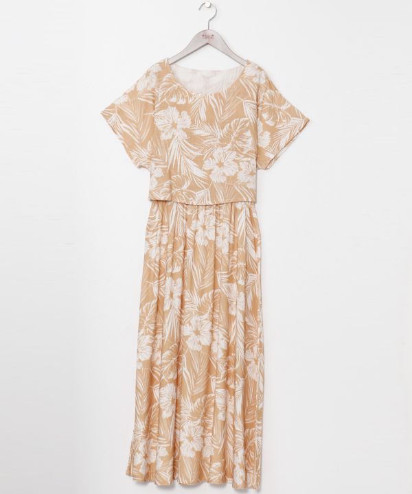 レーヨン麻素材を使用したワンピース。さらりとした肌触りで快適な着心地です。ハワイを代表するボタニカル柄をヴィンテージ調にプリントし、ウエストゴム仕様で自然なメリハリを演出。セットアップ風のデザインが魅力です。