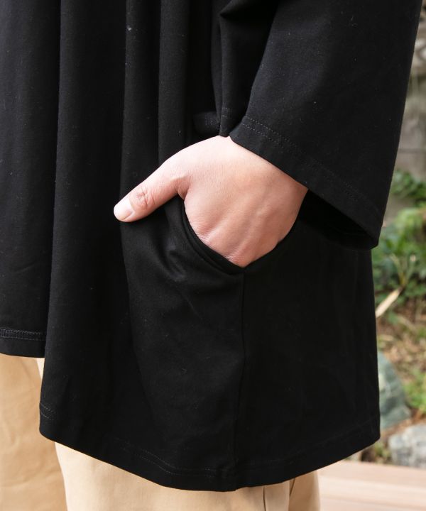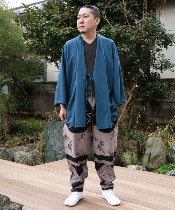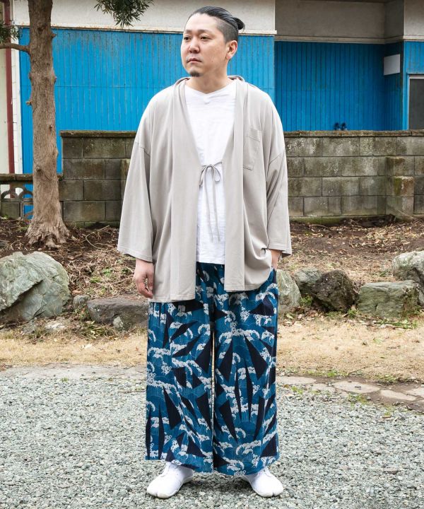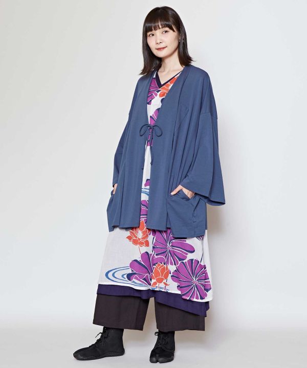 涼しく着心地の良いカットソー生地の羽織。湯上りにバサっと羽織りたくなるような綿素材で吸水性の良い、リラックス感がある羽織。 ユニセックスで着用可能。