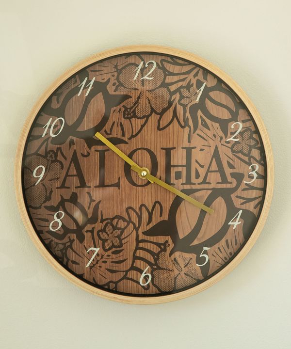 大人気のハワイアンウッドクロック。時計に彫られたホヌ(海亀)たちがあなたをお出迎え。クラシックなデザインなのでどんなインテリアにも合います。 単三電池1本使用(別売り)/ 保証書付き