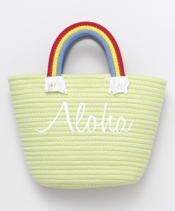 やわらかな綿素材で軽やかな持ち心地のバッグ。500mlボトルもすっぽり収まる使い勝手の良いサイズ感です。ハワイの青空に架かるレインボーを持ち手に表現し、雲をイメージしたフリンジからのぞく虹モチーフが遊び心をプラス。お散歩やショッピングなど、気軽なおでかけにおすすめです。