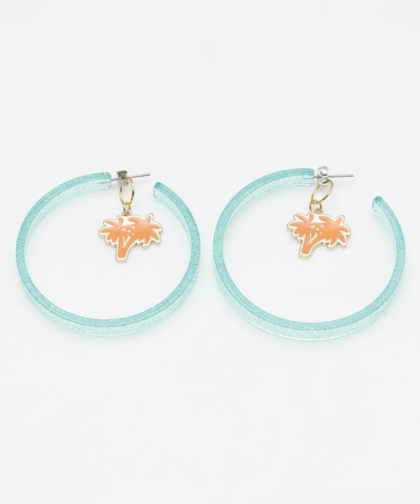 華やかなHAWAIIを連想させる、トロピカルカラーのアクリルフープピアス。風に揺れるパームツリーが目を惹くデザインです。