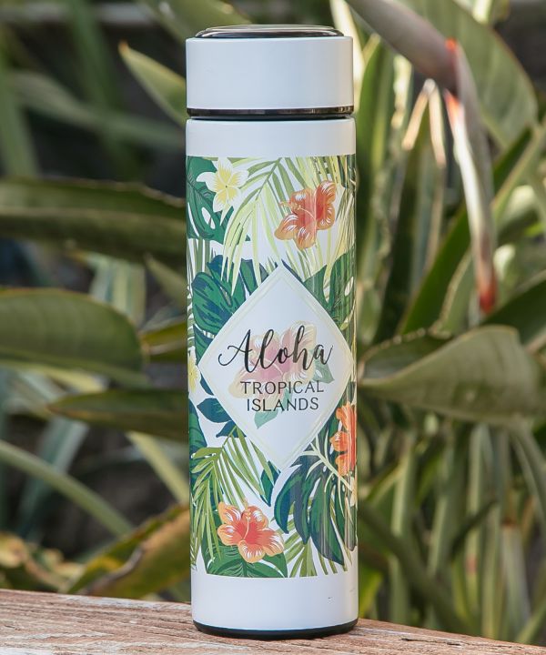 持ち運びに便利なステンレスボトル。モンステラやダイアモンドヘッドなど持ち歩いているだけで、ロコ気分になれるボトルです。ビーチウォークやサイクリングのお供にもおすすめ。茶漉し付き。 保冷効力8℃以下5時間 保温効力50℃以上5時間 食洗機×