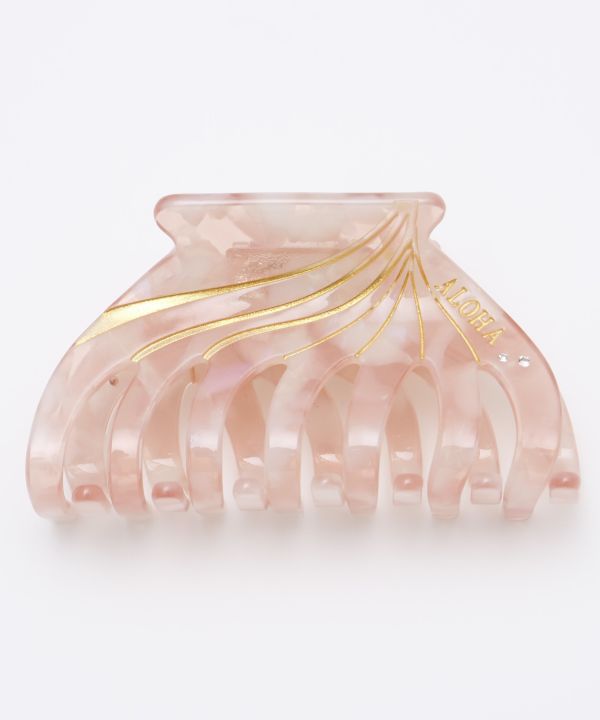 HAWAIIのビーチで輝くシェルがモチーフのヘアクリップ。爽やかな色合いとさりげないALOHAの文字がポイント。ビーチコーデにも似合うヘアクリップです。