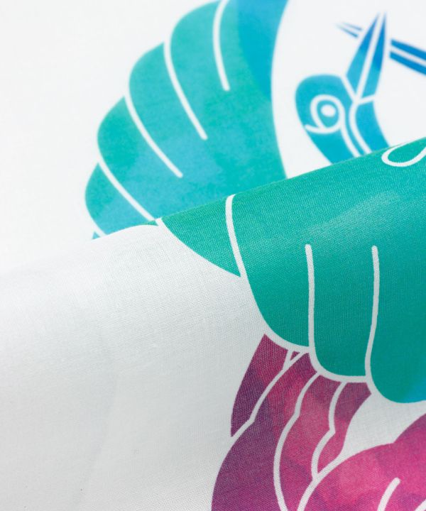 彩り鮮やかなハンカチです。モダンな家紋がポイント。自分用に持つのはもちろん、プレゼントとしても喜ばれる一枚です。