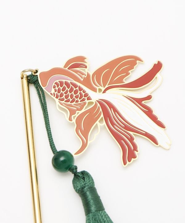 優雅にたゆたう金魚モチーフのかんざし。大振りな金魚を、薄い真鍮製のプレートで表現することで、着け心地も軽やかに。