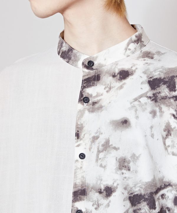 落ち感のある素材と、タイダイ柄の合わせがシックに決まる大人コーデにぴったりの一枚。綿麻素材でサラリと着れる。オーバーサイズのシルエットがどんなコーデも引き立ててくれること間違いなし。