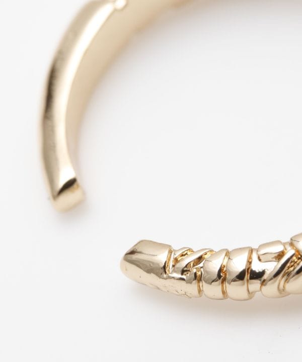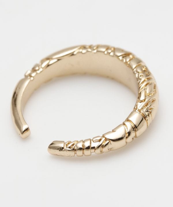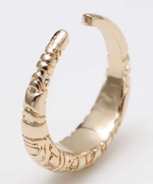 トライバル柄を施したイヤーカフ。ピアスの穴がなくても耳に挟むだけで簡単装着。カラーはゴールド、シルバーの2色展開で、男女ともに使いやすい丸みのあるシンプルデザイン。