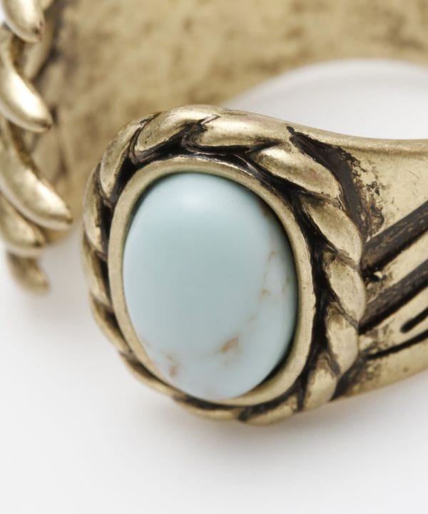 ベアクロウ(熊の爪)のモチーフにターコイズを組み合わせたリング。熊はネイティブアメリカンの神話に多く登場し、パワーや強さの象徴とされ、ベアクロウを身に着けると病気や災いのお守りになるとされています。