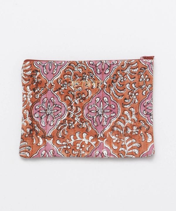 小物の収納に便利な綿素材ポーチ。ヒンディ語で「ハンドメイド」という意味の刺繍があしらってあります。