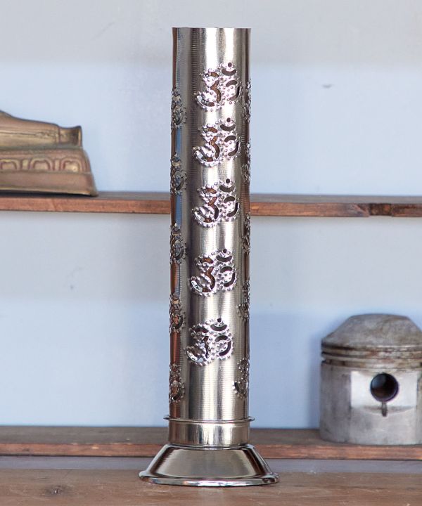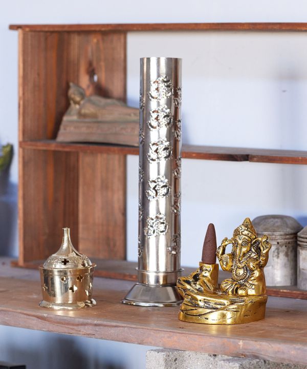 透かし柄がインパクトのある縦型のお香立て。立ち昇る煙と香りに癒される。