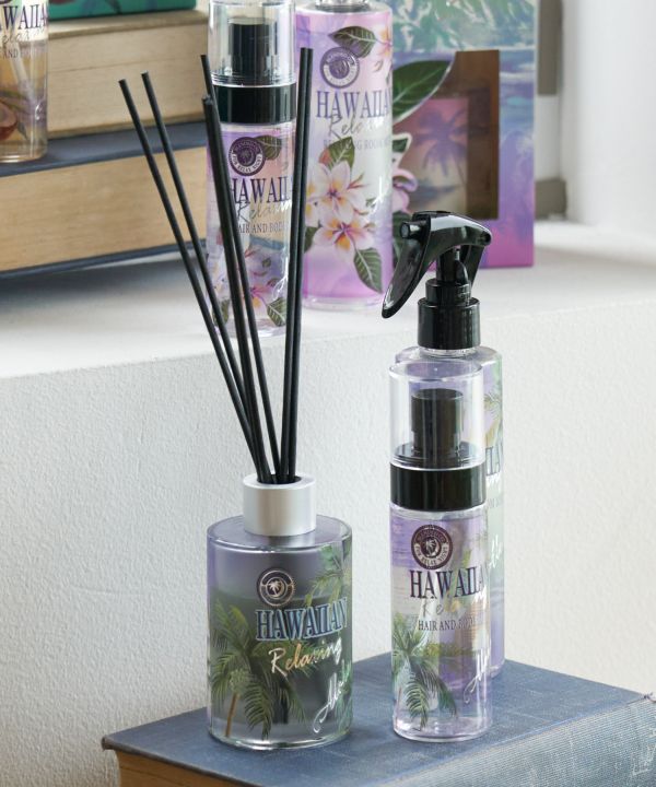 穏やかな眠りを誘うリラックスシリーズのディフューザー。 HAWAIIの情景を思い出して心と体が癒され、穏やかな眠りを誘う香りです。リラックス効果のある精油配合。素敵なデザインのディフューザーでリラックスできます。ギフトにもおすすめです。(ムスク.ラベンダー精油、プルメリア…ピカケ精油、メローココナッツ…オレンジ精油)
