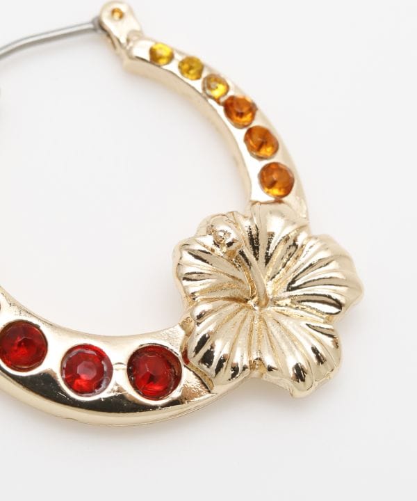 HAWAIIのハイビスカスの華やかさをイメージしたビジューのピアス。シンプルなコーディネートのアクセントに。