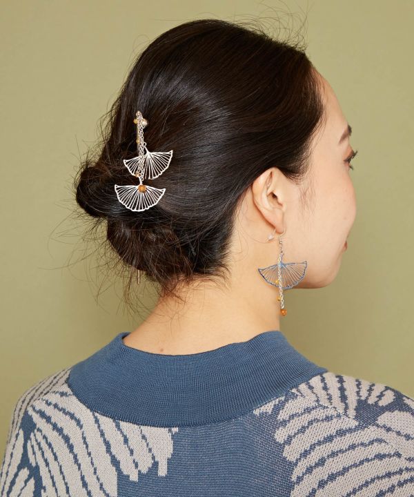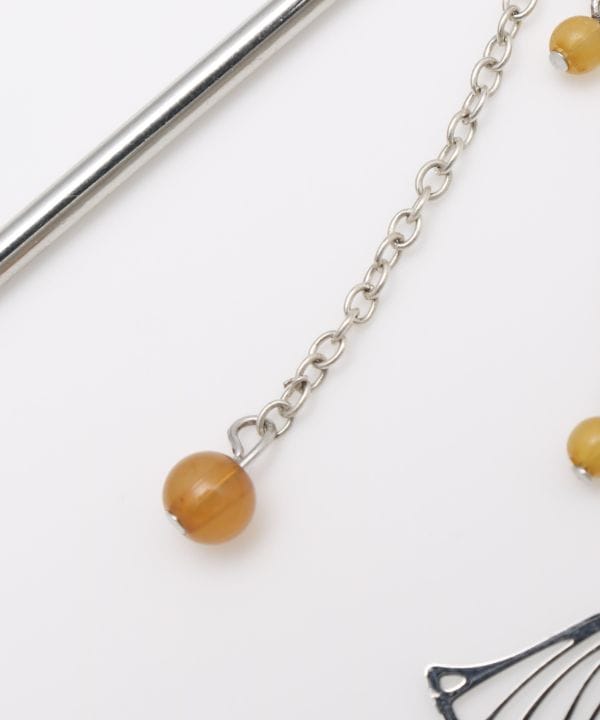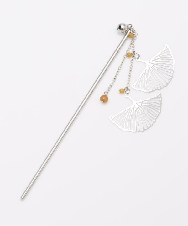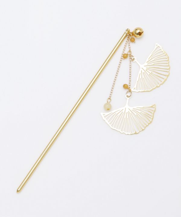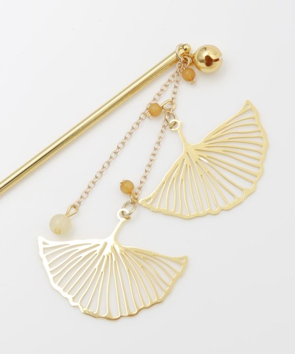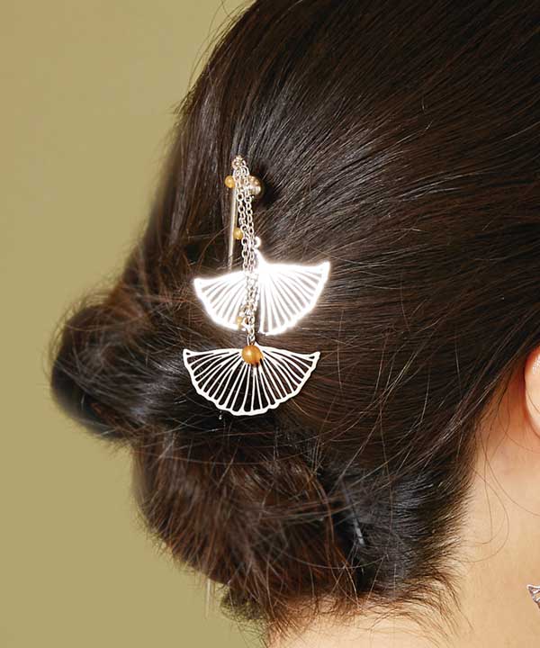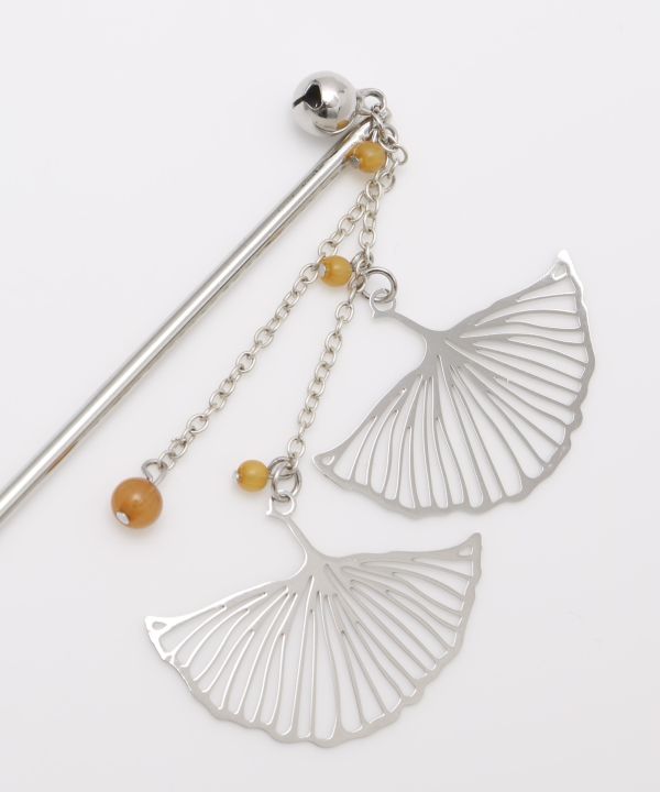 落葉する銀杏の葉をイメージしたかんざし。揺れて垂れ下がるビーズは銀杏を思わせます。透かし模様のアクセサリーは大人の雰囲気たっぷり。