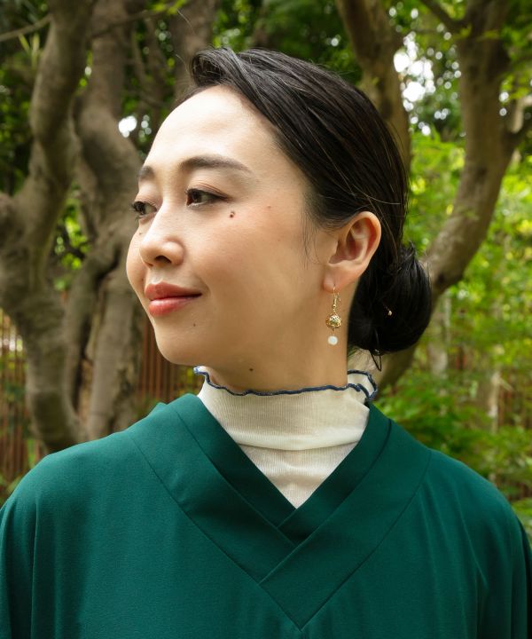 どこか懐かしさを感じさせる鮮やかな色彩のレディースインナー。首元と袖口はメローロック始末されており女性らしい印象に。衿元や袖口にと覗く差し色としてコーディネートの幅を広げられる一着です。