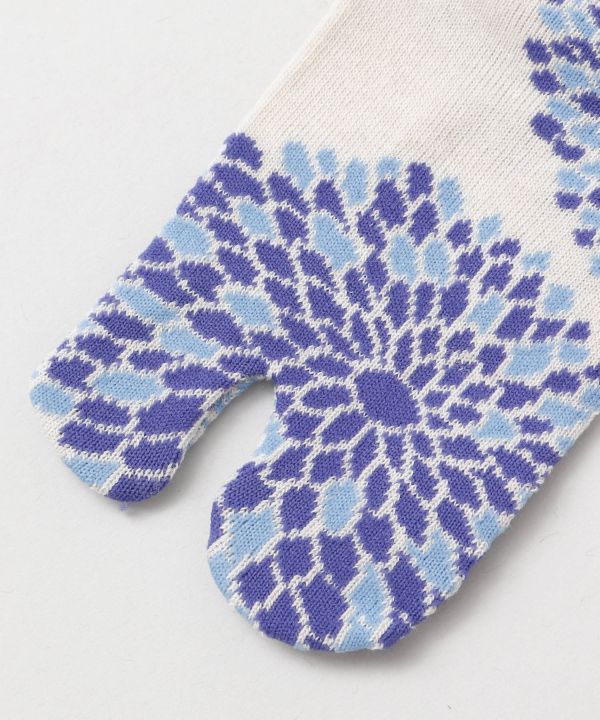 日本人の足にしっかり馴染んで履きやすい。足袋特有の履き心地。古くて新しい奈良の靴下です。着物の柄として好まれるむじな菊には健康長寿・不老不死の願いが込められています。