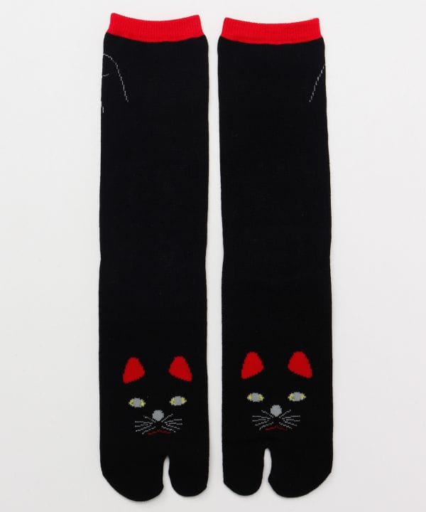 日本人の足にしっかり馴染んで履きやすい。足袋特有の履き心地。古くて新しい奈良の靴下です。福を招く縁起物の招き猫。最も縁起が良いとされる雄の三毛猫にあやかった、白黒茶の3色展開です。
