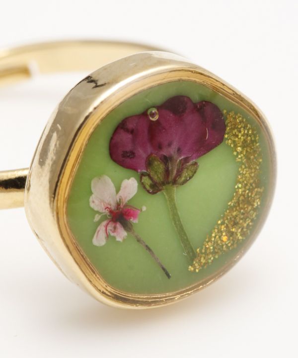 押し花が可愛らしさを演出してくれるリング。好きな押し花を探してみて!※天然素材のため、押し花の色や形が写真と異なる場合がございます。