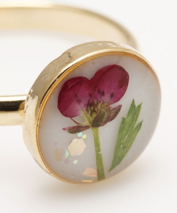 押し花が可愛らしさを演出してくれるピンキーリング。好きな押し花を探してみて!※天然素材のため、押し花の色や形が写真と異なる場合がございます。