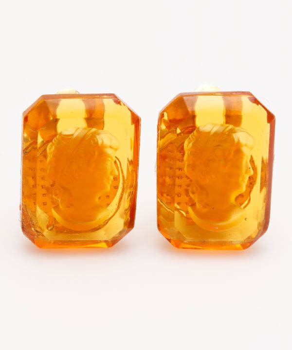 ドイツで作られたカメオガラスのイヤリング。レトロで高級感のある色合いのガラスが耳元を美しく演出してくれます。